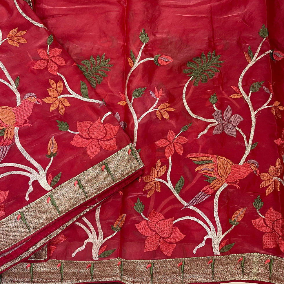 Red Floral & peacock thread work fancy saree